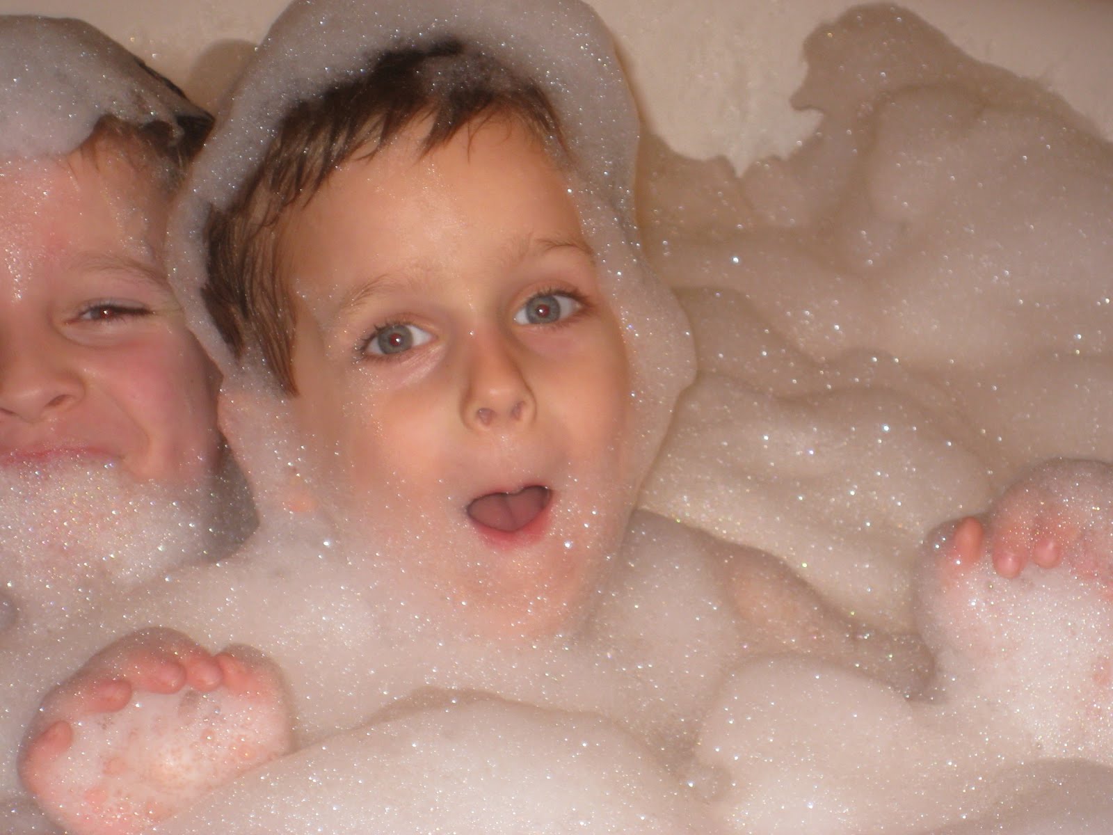 Nephews breaking in the new tub with a bubble bathEdmund