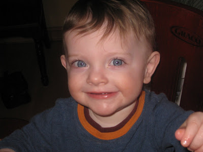 - He is clapping, fighting with his sister and cousin Henry, stealing toys, pulling Evie's hair, pulling Cozy's hair, and he says "All Da" and yells noises at the ABC song.