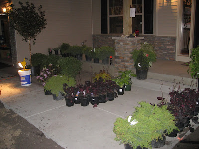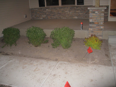 So my husband comes to me at 4pm on a Friday afternoon and sells me on landscaping our whole front yard in 24 Hours. Well, since I've been married to this man for 10 years now I know his math. What he thinks he can do in 24 hours usually ends up taking 4-7 times longer. Well, this ended up taking 7 times longer. I'll post the before and during pictures and once we get our sod in I'll post the finished product.These two pics are the uninspiring landscaping that came with the house.